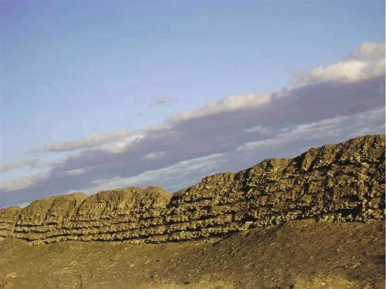 花海漢長城遺址位于玉門市花海鎮(zhèn)西泉村頭墩西側至二墩東側,西起三墩,東至花海頭墩,全長約3.5公里。長城基寬約2.4米,用沙石、紅柳分層夯筑,最高部分保存有紅柳7層,是河西走廊漢代長城遺址中保存較完好的地段之一。(蘭州日報社全媒體記者 王萬盈 高慧霞 文/圖)
