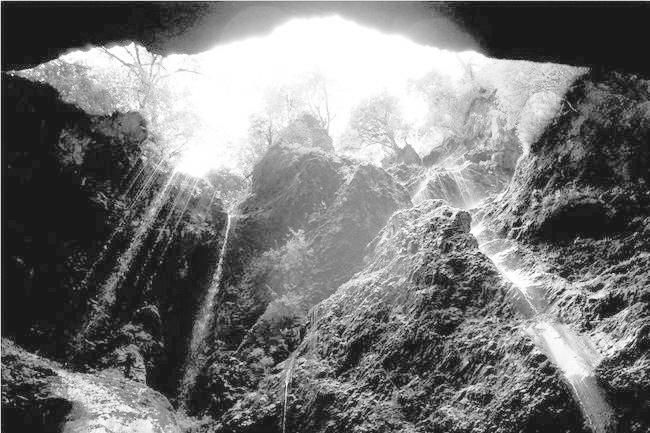 天井峰是整座天井峽的最高點(diǎn)。距天井峰不遠(yuǎn)處,有一股噴涌而下的泉水飛流直下,正好激濺在一塊奇石上,日積月累,石上竟沖刻成一個(gè)融隸、篆、草為一體的天然“幽”字,這塊巨石也就被稱為“幽”字石,因此天井峽又被稱為“天井幽谷”。