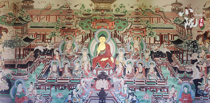 近日,一副長(zhǎng)15米、高6米的大型臨摹復(fù)制敦煌壁畫(huà)《無(wú)量壽經(jīng)變》在武威鳩摩羅什寺完美竣工,將于近期對(duì)外開(kāi)放。