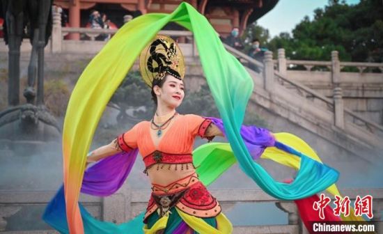11月27日,伴著幽幽古樂,婀娜多姿的伎樂飛天舞、勁健舒展的反彈琵琶舞、靈動飄逸的飛天火焰綢舞,三種不同舞動形式的敦煌舞在“江南三大名樓”之一的黃鶴樓前同時演繹。舞蹈演員時而翻轉(zhuǎn)琵琶,時而揮動絲綢,體態(tài)輕盈,翩若驚鴻,在氤氳的霧氣映襯下宛如在仙境起舞。在26日至28日舉辦的首屆中國(武漢)文化旅游博覽會上,甘肅組團推介熱門文旅,“飛天秀”是其中一項。