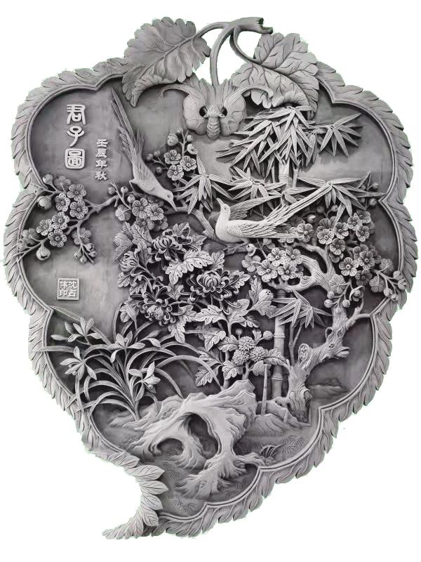 端詳沈占偉的作品,有栩栩如生的花鳥,大氣磅礴的山川,活靈活現(xiàn)的人物,能想到的體裁應有盡有??梢哉f遠看端莊大氣,近看細節(jié)精湛,尤其是對動植物的刻畫,仿佛通過他的刻刀賦予了生命,在原本冰冷的磚塊上呼之欲出,生機勃勃。難能可貴的是,他并不會限制自己的創(chuàng)作體裁,每一幅作品都是匠心之作,都傾盡了他的心血。