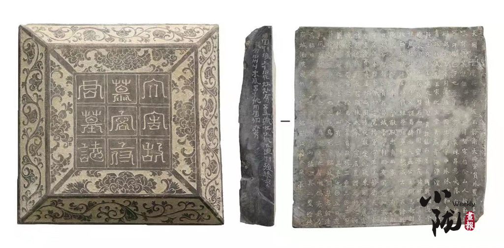 甬道正中出土墓志一合,時(shí)代明確,內(nèi)容豐富,顯示墓主為吐谷渾末代國王慕容諾曷缽第三子,“大周云麾將軍守左玉鈐衛(wèi)大將軍員外置喜王”慕容智。墓志首次提及武威南山區(qū)“大可汗陵”的存在,墓志左側(cè)面還刻有兩行利用漢字偏旁部首合成的文字,初步判斷為吐谷渾文,是目前所見依據(jù)漢文創(chuàng)造的年代最早的游牧民族文字。