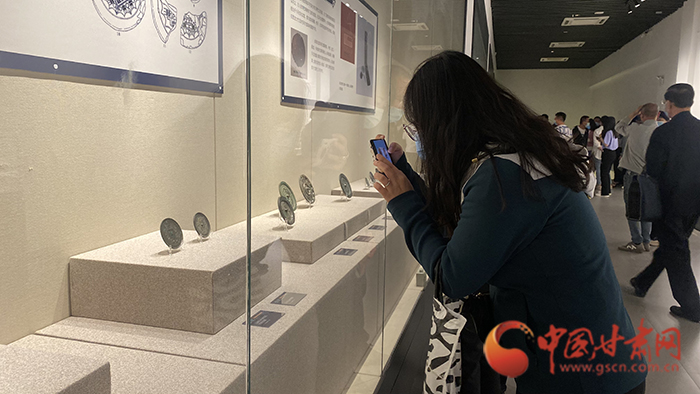中國(guó)甘肅網(wǎng)5月9日訊(本網(wǎng)記者 沈文剛)5月9日,由蘭州市文旅局和平?jīng)鍪形穆镁种鬓k,蘭州市博物館、平?jīng)鍪胁┪镳^、涇川縣博物館、靈臺(tái)縣博物館、崇信縣博物館、華亭市博物館、莊浪縣博物館、靜寧縣博物館等八家市縣博物館聯(lián)合舉辦的《光耀金城 鏡鑒千秋——蘭州平?jīng)鲳^藏精品銅鏡聯(lián)展》開(kāi)展。