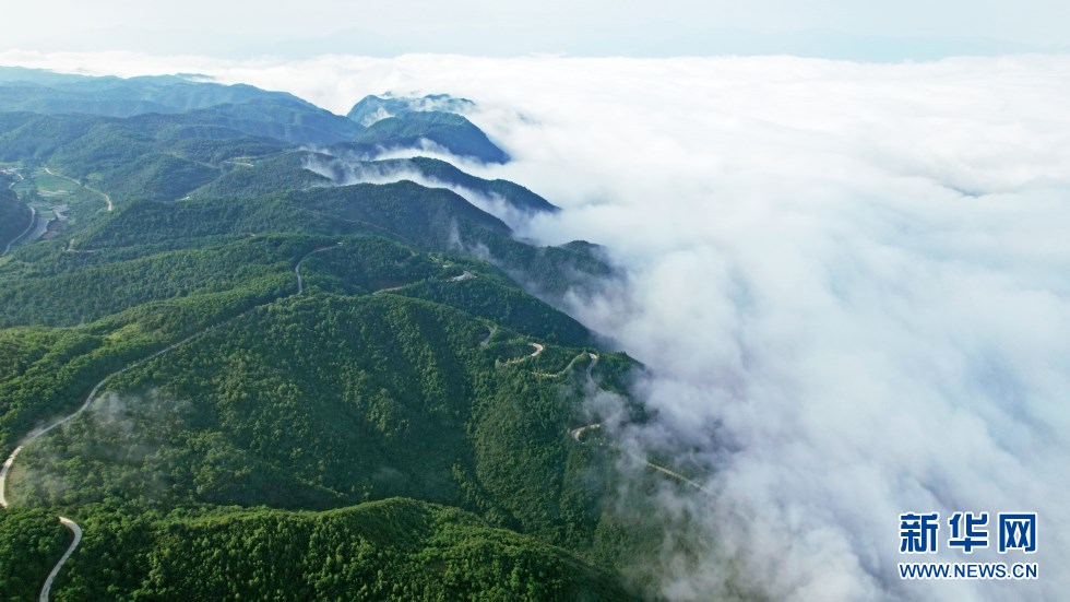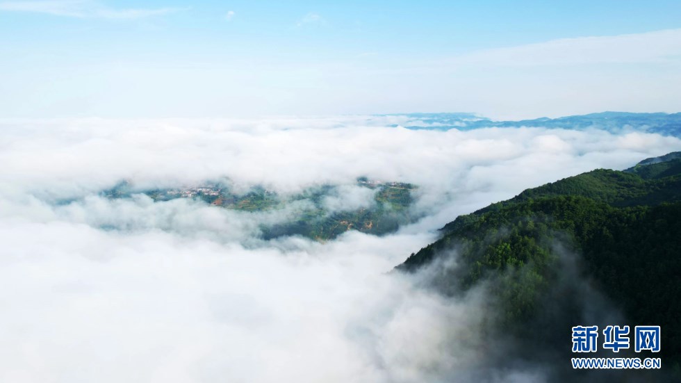 6月27日清晨,“軒轅故里”甘肅省天水市清水縣山門鎮(zhèn)出現(xiàn)壯美云海勝景,山巒之間云霧繚繞,潔白流云與峰巒疊嶂交相輝映,恰似一幅水墨山水畫卷,宛若人間仙境。新華網(wǎng)發(fā)(周文濤 攝)