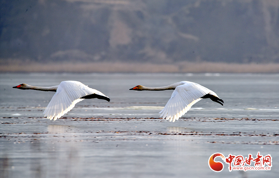 初冬,位于平?jīng)鍪徐o寧縣境內(nèi)的懸鏡湖迎來(lái)白天鵝在此組團(tuán)落腳,這是今年以來(lái)天鵝首次“光臨”懸鏡湖。