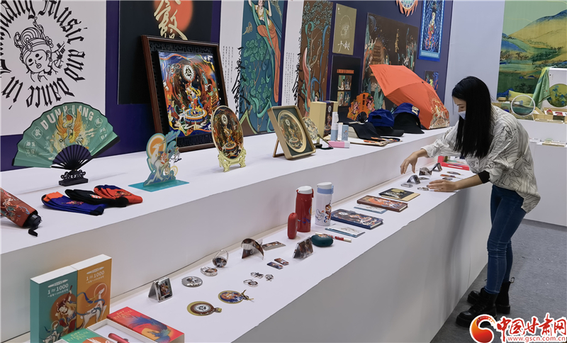 目前,甘肅省主題展館及分館已完成搭建和布展。讀者集團(tuán)文旅公司運(yùn)營經(jīng)理馬倩云介紹,甘肅省主題展館由形象綜合展區(qū)、文藝創(chuàng)作展演、數(shù)字敦煌展區(qū)、文化出版展區(qū)、非遺傳承展區(qū)、隴上好禮展區(qū)六大專題展區(qū)組成,突出敦煌文化、黃河文化、伏羲文化、長城文化、革命文化等甘肅特色文化元素,通過精選的具有標(biāo)志性的文創(chuàng)產(chǎn)品、圖書期刊、精美非遺等約600種4000件展品,全景式展現(xiàn)甘肅獨(dú)特豐富的文化資源、豐碩的文化改革發(fā)展成果和巨大的文化產(chǎn)業(yè)發(fā)展優(yōu)勢。