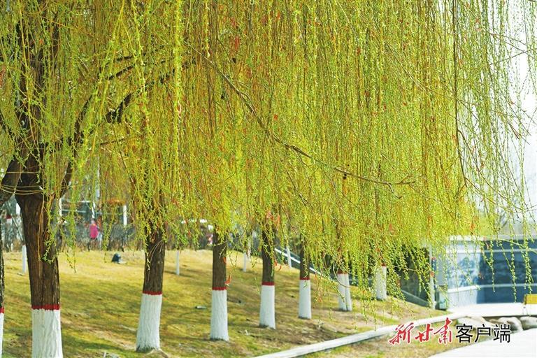 3月17日,隨著氣溫逐漸升高,蘭州黃河風情線上柳絲漸綠,丁香花、桃花競相開放,給市民帶來濃濃的春意。 新甘肅·甘肅日報記者 馮樂凱 攝