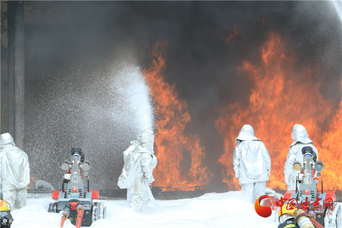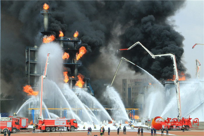 現(xiàn)場,爆炸聲浪一波未平,一波又起,黑煙滾滾夾雜火苗亂竄。在嚴峻考驗面前,消防隊伍采用先進技術(shù)壓制火力,發(fā)起總攻。最大程度模擬真實火災(zāi)場景,達到應(yīng)對復(fù)雜火災(zāi)考驗的能力。