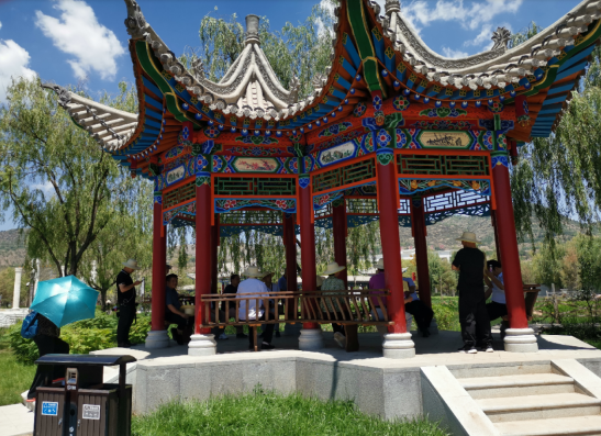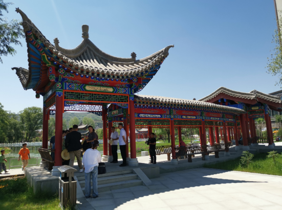 癸卯夏末,甘肅省、蘭州市著名詩人聯家一行10余人,應邀來到著名的史前遺址——齊家文化發(fā)現和命名地——廣河縣,考察該縣城新建成的公園,為其命名,并撰寫楹聯、匾額,為橋、亭、榭、湖、軒等景點命名。