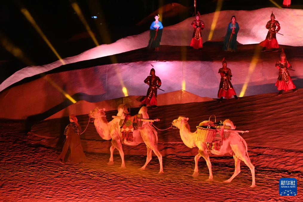 今年以來,脫胎于敦煌文化的洞窟沉浸式體驗劇《樂動敦煌》、室內(nèi)情景體驗劇《又見敦煌》、沙漠實景演出《敦煌盛典》和中國殘疾人藝術(shù)團情景音畫劇《千手千眼》四場劇目在絲路名城甘肅敦煌同步上演,劇目將敦煌歷史底蘊、服飾文化、樂舞文化等生動融合,為游客呈現(xiàn)出精彩絕倫的敦煌文化視覺盛宴,深受中外游客喜愛。截至8月10日,四大劇目今年已累計演出1175場次,觀看游客突破66萬人次。其中,《敦煌盛典》以敦煌鳴沙山月牙泉為背景,將沙漠景觀與現(xiàn)代舞美結(jié)合,將墻體燈光融入實景演出,講述了一段發(fā)生在古絲綢之路重鎮(zhèn)敦煌的愛情故事,展示了敦煌的歷史文化及人文風貌。