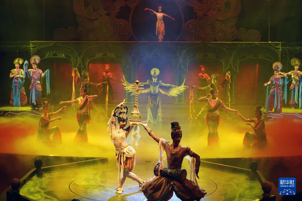 8月9日,演員在《樂動敦煌》中表演。新華社記者 馬寧 攝