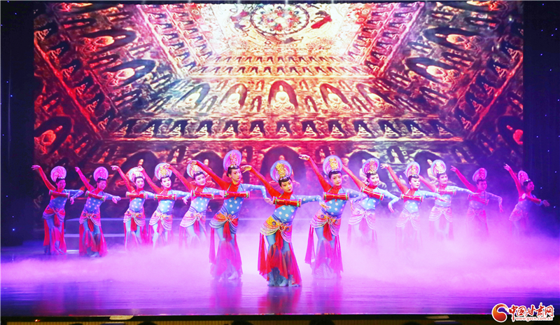 除了甘肅省民族歌舞團(tuán)和西北民族大學(xué)舞蹈學(xué)院聯(lián)袂獻(xiàn)上的精彩節(jié)目外,當(dāng)晚,肅州區(qū)文化館還為觀眾奉獻(xiàn)了舞蹈《西域羯鼓》。據(jù)悉,羯鼓源自西域,狀似小鼓,兩面蒙皮,均可擊打,既能表現(xiàn)快速緊急或激烈的情緒,又可以用散淡悠長來營造靜謚雅致的氛圍。表演中,舞者著霓裳,帶搖冠、掛嚶珞,貼著金花的衣裙飄曳、巾帶飛舞,四周天花飛落,如夢如幻。該節(jié)目通過歡快的音樂、輕快的舞步、流暢的隊(duì)形變換等形式,展現(xiàn)了極具特色民族舞蹈風(fēng)格,也反映了隴原兒女團(tuán)結(jié)奮進(jìn)、昂揚(yáng)向上的精神面貌。