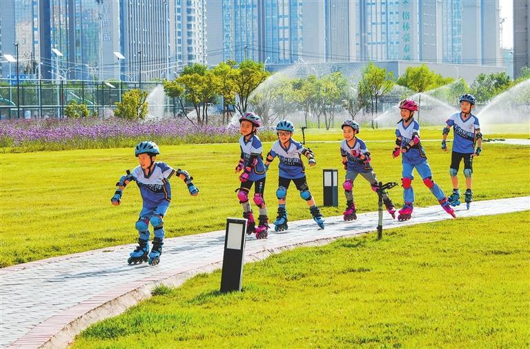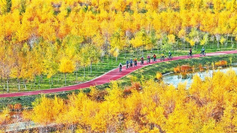 張掖奧林匹克森林公園成為市民健身休閑的好去處。新甘肅·甘肅日報(bào)通訊員 王將