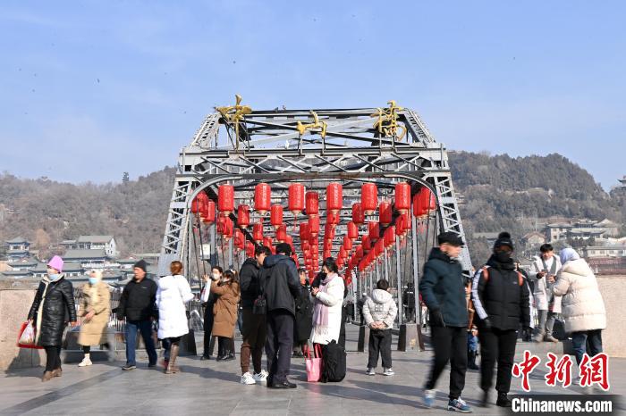 1月30日,蘭州市標(biāo)志性建筑中山橋掛滿了紅燈籠,黃河畔年味漸濃,引得游人駐足觀賞拍照。隨著中國(guó)農(nóng)歷龍年臨近,蘭州街頭節(jié)日氛圍濃厚,民眾紛紛涌入市集,逛攤位、購(gòu)年貨、感受著龍年到來(lái)前的歡樂(lè)與喜慶。