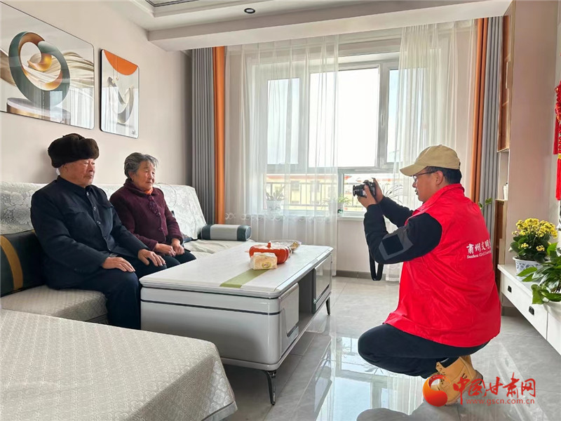“大爺笑一笑,牽著大娘的手……”攝影志愿者們下村入戶,上門為村民拍攝全家福,用鏡頭為群眾定格幸福團圓的瞬間,留住溫馨美好記憶。從選擇服裝到整理發(fā)型,從選取角度到調(diào)動情緒,志愿者們忙的不亦樂乎,在他們的引導(dǎo)和鼓勵下,老兩口由開始的緊張到后來的自信從容,一幕幕美好的生活片段被記錄了下來。