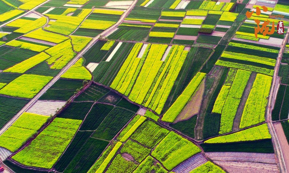 田埂分明,田園氣息滿滿,入眼的是金燦燦的油菜花,入耳的是蜂飛蝶舞,猶如一張金色的畫卷。