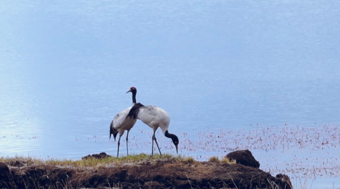 進(jìn)入5月,在位于青藏高原東端的甘肅省甘南州碌曲縣尕海則岔國家級自然保護(hù)區(qū),各類候鳥也迎來了繁殖期。黑鸛、白琵鷺、黑頸鶴等珍稀鳥類,或嬉戲鳴叫,或翩躚飛舞。