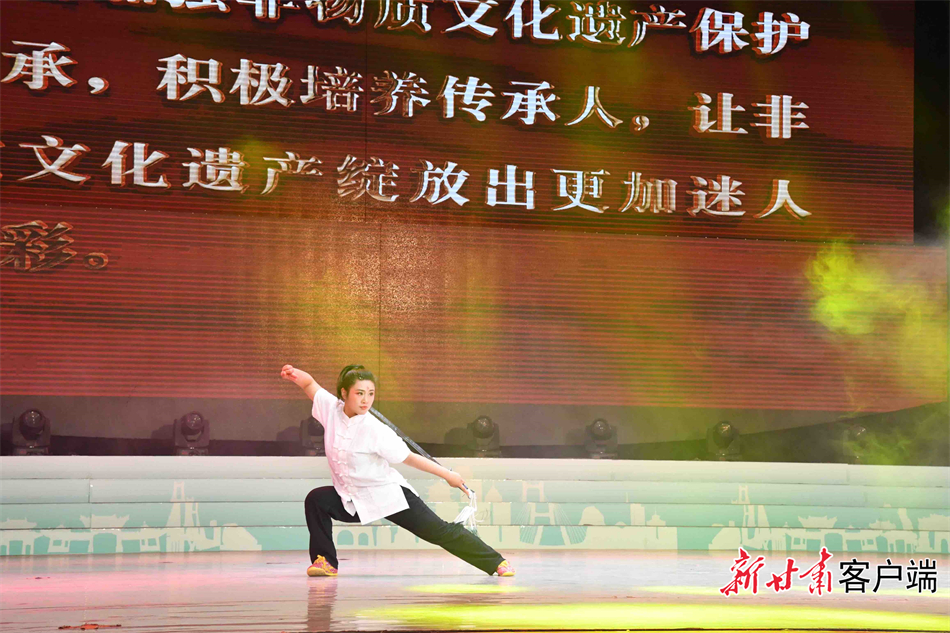 作為華夏文明的重要發(fā)祥地,這里還擁有深厚的文化底蘊和富集的非遺資源:現(xiàn)有國家級非遺項目8項、省級50項、市級180項,各類非物質(zhì)文化遺產(chǎn)在八千年的歷史中不斷傳承與發(fā)展。活動現(xiàn)場,清水木人摔跤、武山武術(shù)、秦州夾板舞等節(jié)目展示了這片文化積淀深厚的黃土地上產(chǎn)生、流傳和發(fā)展的“文化絕活”。