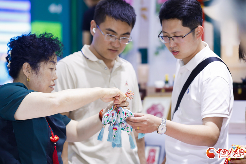 在展館內(nèi),慶陽香包、剪紙等民俗產(chǎn)品同步進行展示展銷,深受現(xiàn)場觀眾歡迎,大家紛紛爭相購買。