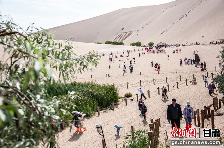 6月10日,敦煌市鳴沙山下,一場以敦煌市舞龍隊(duì)為首的20個健身舞蹈隊(duì)為廣大市民和游客獻(xiàn)上一臺臺精彩的舞蹈盛宴,吸引了眾多游客圍觀、拍照,在敦煌大漠度過一個難忘的端午節(jié)。王斌銀 攝
