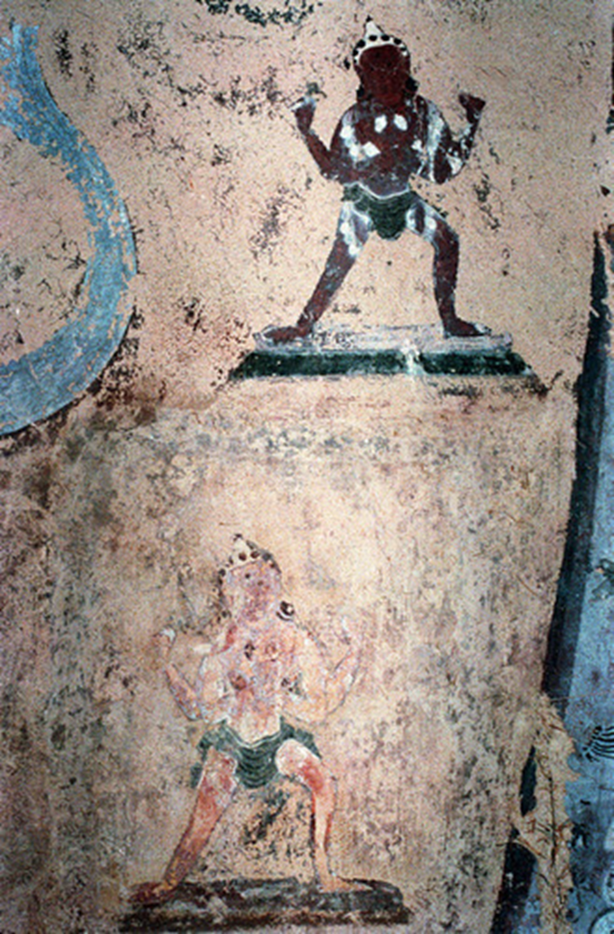 莫高窟465洞窟是從未開放過的重要洞窟之一。其內(nèi)主要珍藏有關佛教密宗的壁畫。它們屬元代(公元1206—1368年)壁畫之精華,具有很高的藝術價值。圖為修復后的被盜壁畫之二明王像(下)。新華社記者李生才攝(1989年10月7日發(fā))