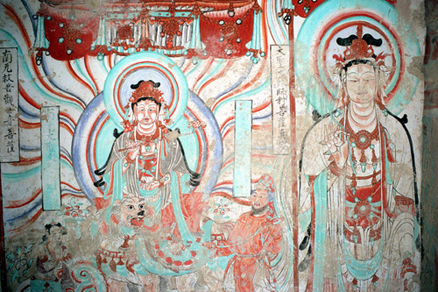 1989年年初,中國敦煌莫高窟465號窟內(nèi)的五處元代壁畫被盜。破案后,敦煌研究院立即組織有關專家將這些支離破碎的壁畫拼接粘合,以高超的技藝復原,然后按照圖片檔案資料進行描繪,使它們基本上恢復了被盜之前的本來面貌。