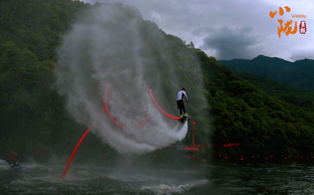 水上飛人特技表演,在給游客帶來一場視覺盛宴的同時,樂享清涼夏日。