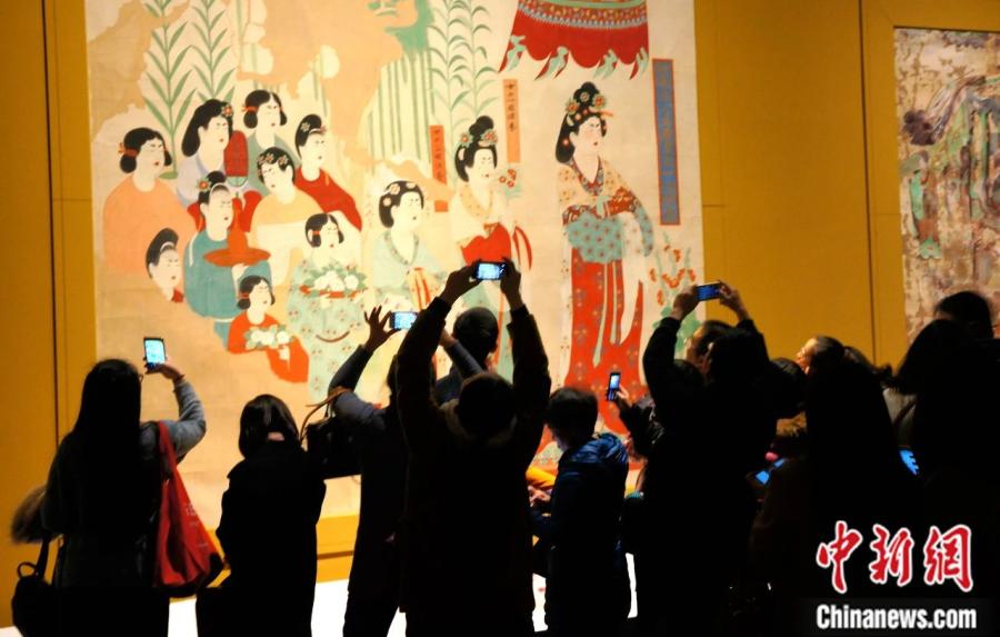 2017年1月,觀眾在成都博物館參觀“絲路之魂·敦煌藝術(shù)大展暨天府之國(guó)與絲綢之路文物特展”。樊甲山 攝