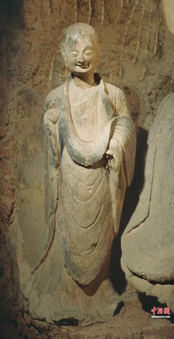 麥積山石窟造像的微笑更讓人親近,云岡石窟造像的微笑則神圣感更強(qiáng)。微笑表情在各個(gè)早期石窟中均有側(cè)重和不同,需要我們仔細(xì)感受和體味。當(dāng)然,這也說明在石窟“大家庭”中,每個(gè)石窟都是不可缺少的成員和構(gòu)成,都能各美其美,美美與共,魅力無限。