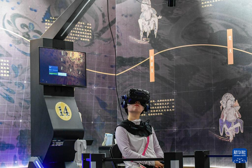 7月22日,游客借助VR設備沉浸式游覽莫高窟第285窟虛擬場景。新華社記者 郎兵兵 攝