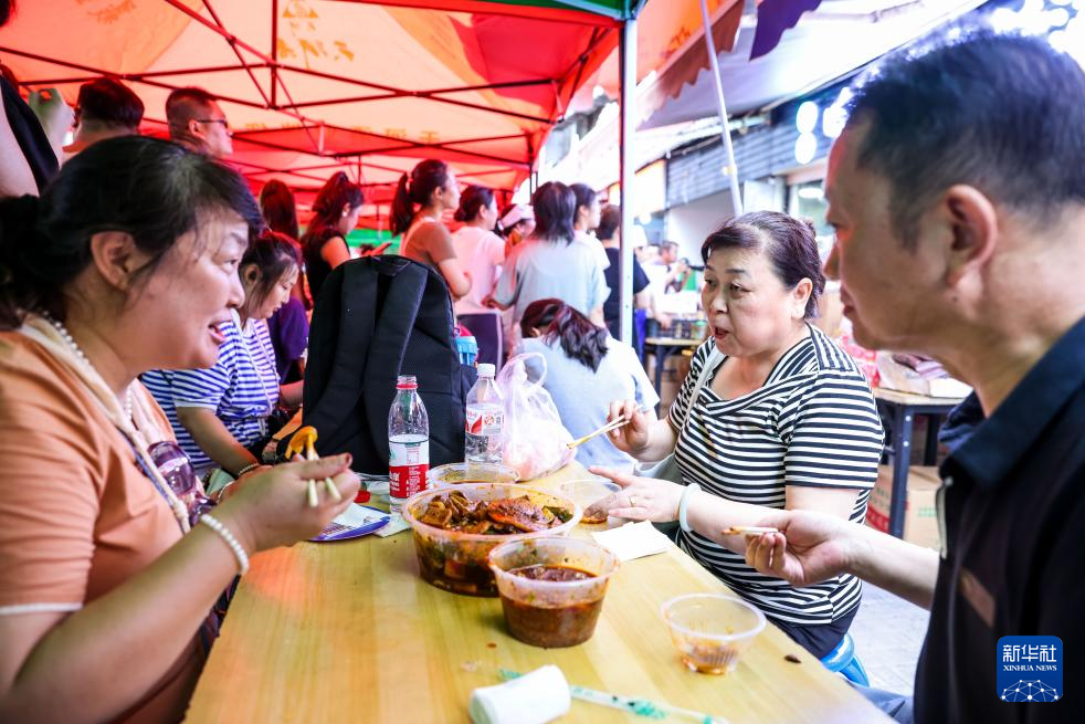 7月22日,顧客在甘肅天水市名優(yōu)小吃城品嘗麻辣燙。新華社記者 呂帥 攝