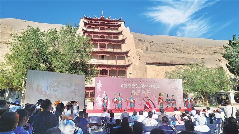 郵票被稱為“國家名片”,有濃縮的“百科全書”之美譽,是講好中國故事、傳播中國聲音、展現(xiàn)中國精神的有力載體。8月3日,《莫高窟(二)》特種郵票首發(fā)儀式在蘭州敦煌藝術(shù)館、敦煌莫高窟景區(qū)舉行。這是繼2020年《莫高窟》郵票發(fā)行后的又一組“莫高窟彩塑”主題郵票。省委宣傳部、省文旅廳、省郵政管理局、甘肅日報社、讀者集團等單位相關(guān)負責人出席儀式。