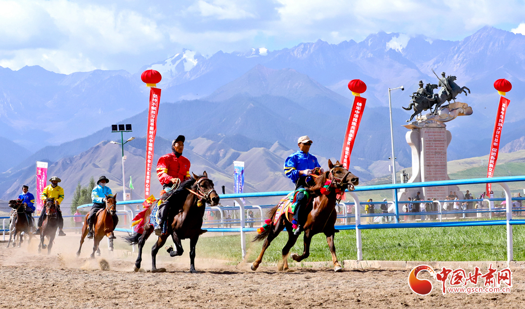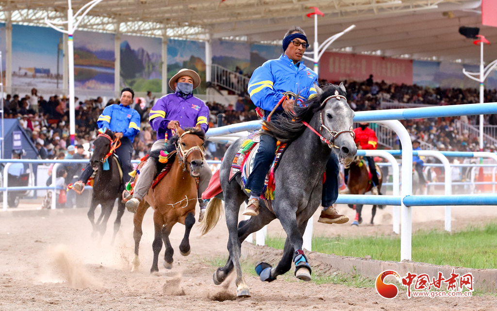 8月14日,2024年中國絲路大賽馬——肅南裕固族自治縣賽馬會舉行,騎手們身著民族節(jié)日盛裝駕馭著486匹駿馬、72峰駱駝在賽場上進行速度賽馬、走馬、賽駱駝等民族體育運動比賽。