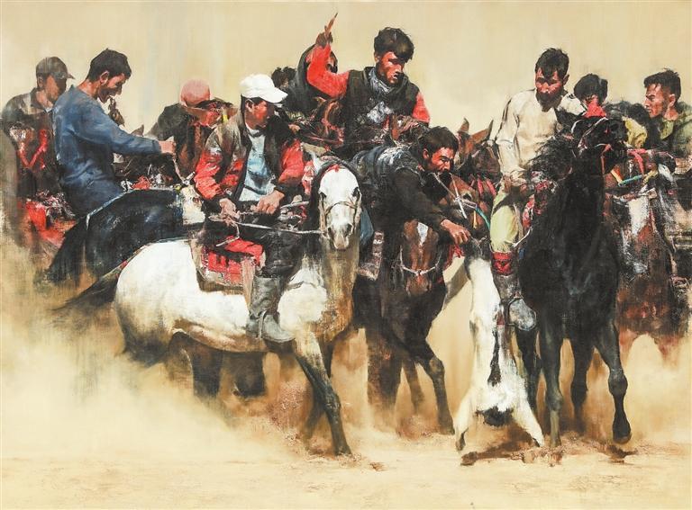 非遺——塔吉克叼羊 (油畫) 張國(guó)鋒 (本版文圖由甘肅省美術(shù)家協(xié)會(huì)提供)