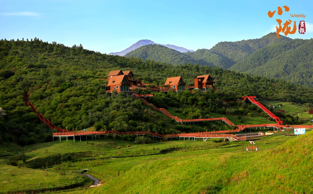 放眼望去,山峰起起伏伏,宛如鋪上了一層綠毯。山巒與草坡、森林及紅瓦白墻映入眼簾,景區(qū)道路伸向遠方。