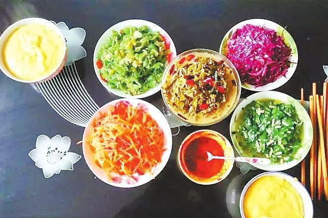 百人百心病,百人百口味?,F(xiàn)在的人吃馓飯,對菜品的要求越來越高了,除了酸菜,人們大多還會(huì)調(diào)一些涼菜,或炒一些菜,蘿卜的,肉丁的,山野菜的,虎皮辣子的,滿滿地?cái)[上一桌子,如錦上添花,令人食欲大增。