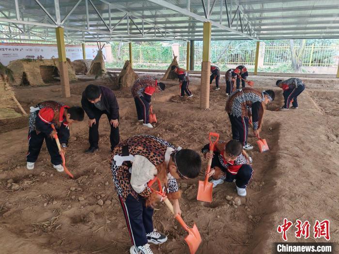 10月16日,大地灣博物館開展“史前工坊”特色主題社教活動,吸引大批孩子參與體驗(yàn)。 (秦安縣委宣傳部供圖)
