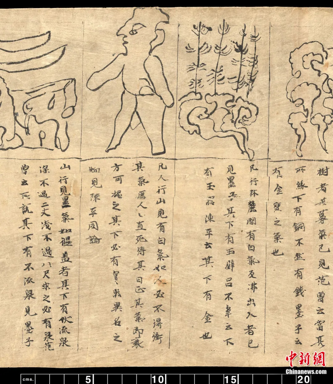 《云氣占》包括26幅不同形狀的云氣,圖下80行文字。有趣的是,根據(jù)第43行中提到“臣淳風(fēng)言”,可推測(cè)這件文獻(xiàn)應(yīng)寫于唐貞觀年間,它的母本可能是唐初著名的天文星占家李淳風(fēng)給唐太宗李世民的一個(gè)進(jìn)呈本。