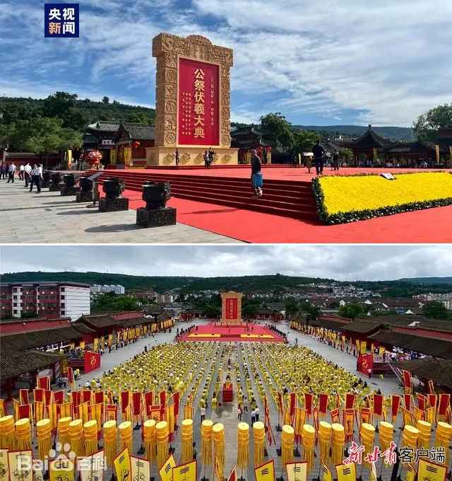 甘肅天水是伏羲的誕生地,自古以來(lái)就有祭祀伏羲的傳統(tǒng)。自1988年以來(lái),每年6月夏至日舉辦的天水公祭伏羲大典,已成為海內(nèi)外同胞尋根祭祖的重要平臺(tái)。2006年,“太昊伏羲祭典”被列入首批國(guó)家級(jí)非物質(zhì)文化遺產(chǎn)名錄。2014年起,天水每年與臺(tái)灣地區(qū)同日同時(shí)舉行海峽兩岸共祭伏羲典禮。