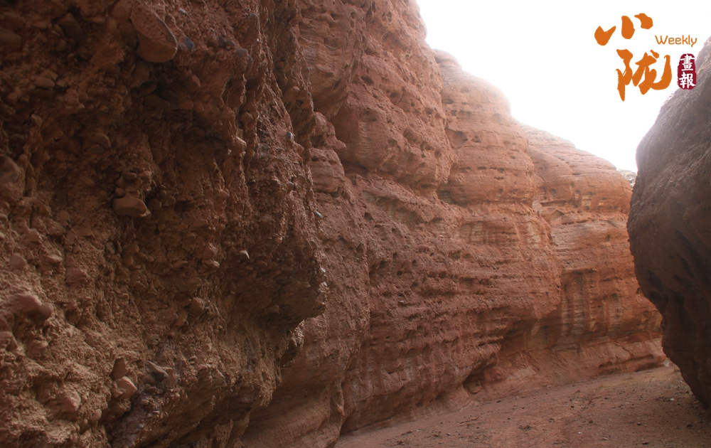 巖石呈赤紅色,紋理斑駁,如歲月鐫刻的密碼,訴說著億萬年的地質變遷。