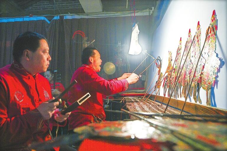 近日,記者走進(jìn)環(huán)縣環(huán)州故城道情皮影館,燈光暗去,音樂響起,泛黃的幕布后,市級非遺代表性傳承人許明堂的“老道情”吼起來,在他的十指轉(zhuǎn)動間,幕布上的皮影人物“活”起來:坐臥、行走、提袍甩袖,伴隨著各種樂器,一場精彩的《羅通掃北》皮影戲上演。