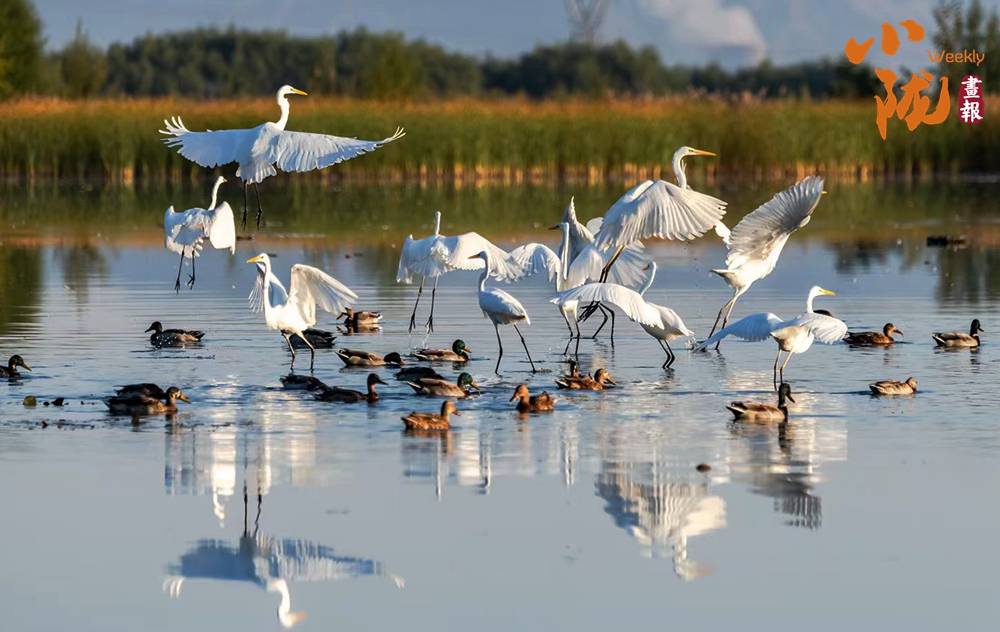 春天,這里萬物復(fù)蘇,蘆葦新綠,候鳥歸來,整個(gè)公園充滿生機(jī)。它們依水而居,或在水中游泳和潛水,或在淺水、灘地與岸邊涉行,或在其上空飛行,引得游人們駐足觀看,構(gòu)成一幅人與自然和諧共生的生態(tài)畫卷。