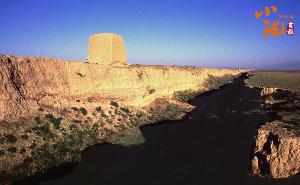 在黛藍(lán)色山脈的映襯下,漢明長城蜿蜒并行,高于地面的黃色城墻是明長城,而顏色稍深的壕溝是漢長城,兩條跨越千載的古長城最近處不過十余米,仿佛攜手講述著遠(yuǎn)古的故事……它們也猶如兩位忠誠的衛(wèi)士,守護著這片古老的土地,也見證了絲綢之路的興衰變遷。
