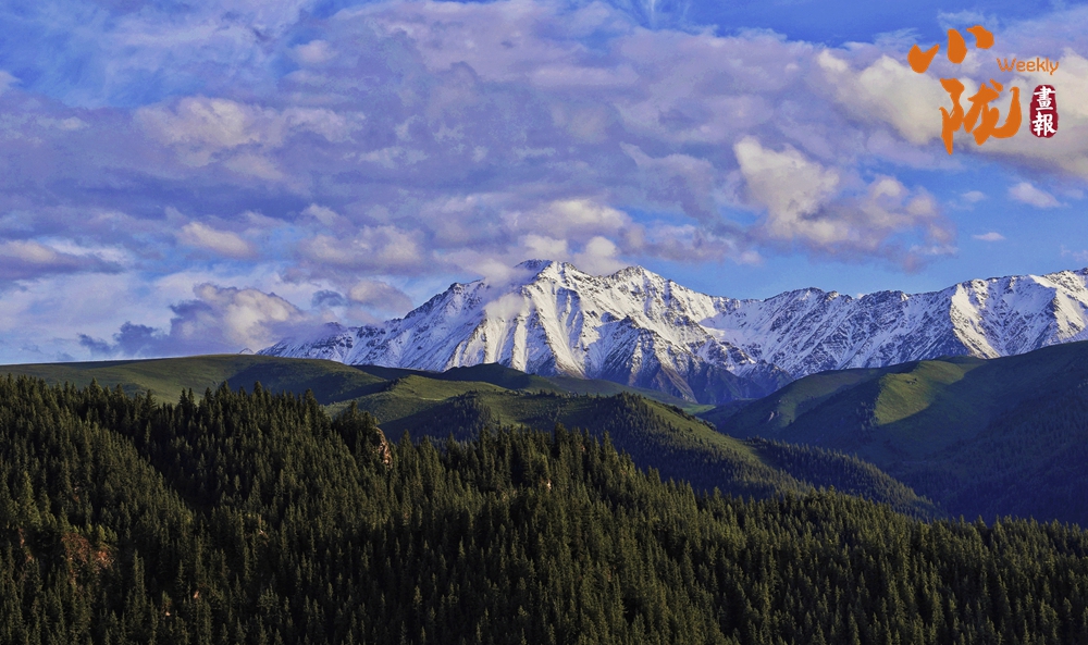 祁連雪峰周圍群峰羅列、層巒疊嶂,高低延綿的群山被此起彼伏的林海包圍,像一道道五彩的波浪,郁郁蔥蔥,生機(jī)盎然。站在祁連山巔俯瞰,冰川積雪與綠洲農(nóng)田、森林構(gòu)成震撼人心的生態(tài)畫卷。