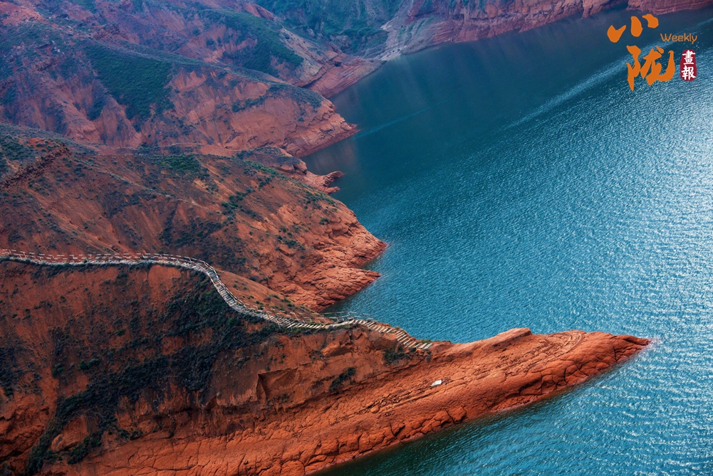 附近山塬如“神龍?zhí)阶?rdquo;般伸進(jìn)庫(kù)區(qū),碧綠水色與赭色丹霞相映成趣,紅巖綠水相融相撞,沒(méi)有絲毫違和感。從大橋邊的公路上山,可以鳥(niǎo)瞰整個(gè)庫(kù)區(qū)和大橋美景,開(kāi)闊的水域讓你心曠神怡,一道飛虹橫跨波光粼粼的庫(kù)區(qū),夕陽(yáng)照耀下,滿眼瑰麗。