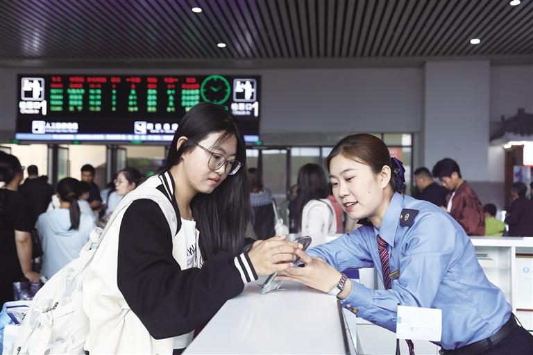工作人員為旅客提供問(wèn)詢(xún)服務(wù)