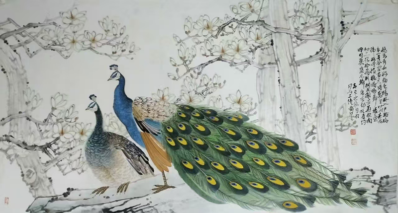 2009年,一幅工筆《粉蝶戲牡丹》的成功售出,成為王自強(qiáng)藝術(shù)生涯的轉(zhuǎn)折點(diǎn)。這幅細(xì)膩靈動的作品不僅帶來經(jīng)濟(jì)收益,更讓他意識到傳統(tǒng)工筆畫的市場潛力。此后十年間,他創(chuàng)作的《孔雀牡丹》等工筆畫作屢獲佳績,八尺整張作品曾拍出2萬余元高價(jià)。但真正讓他在書法界嶄露頭角的,是對漢隸的深入探索。