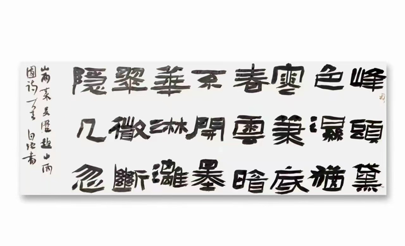 王自強(qiáng)的隸書植根于《西狹頌》的金石氣,又融入個(gè)人創(chuàng)新。他的作品《李白古風(fēng)其一》在2021年“中國書法·年展”中脫穎而出,以古樸厚重的筆法、靈動多變的章法,位列全國前51名,成為成縣首位躋身國家級書法大展的藝術(shù)家。2025年,他的隸書作品再次入選全國第五屆隸書作品展,在15214件投稿中脫穎而出,展現(xiàn)出對漢隸藝術(shù)的深刻理解與創(chuàng)新表達(dá)。