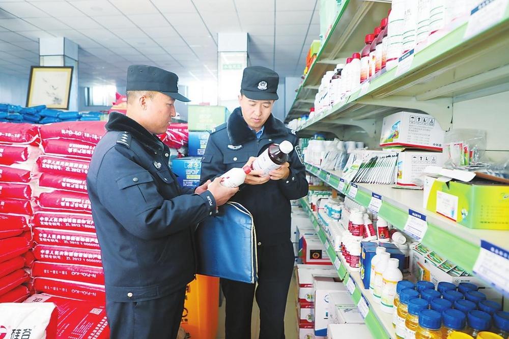 民警在核查農(nóng)藥安全信息。2月28日,定西市公安局安定分局民警開展農(nóng)資市場(chǎng)檢查,從源頭把好農(nóng)資入口關(guān),為春耕生產(chǎn)保駕護(hù)航。新甘肅·甘肅法治報(bào)通訊員楊永剛攝