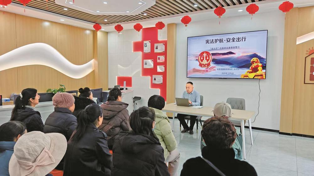 律師在社區(qū)開(kāi)展“憲法護(hù)航·安全出行”主題普法講座。